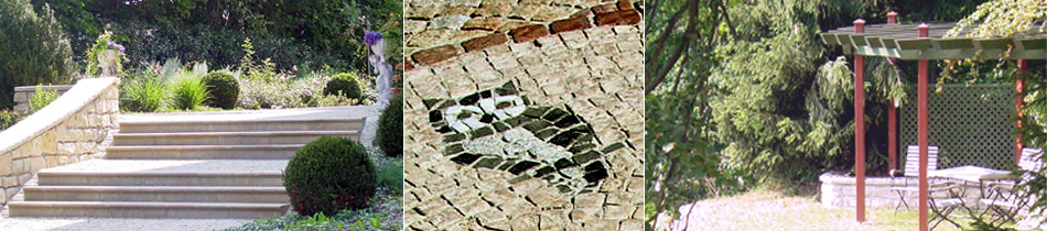 Ein wunderschön am Hang gelegenes Privatgrundstück sollte mit repräsentativem Hausumfeld sowie ruhigen Rückzugsmöglichkeiten zum Sitzen und Entspannen angelegt werden. Geschaffen haben wir eine beeindruckende Vorfahrt mit zum Parkcharakter passenden Mastix-Riesel-Belag, einem Natursteinpflaster-Vorplatz mit zierenden Kleinsteinmosaikmotiven, geschwungener Natursteintreppe zum Eingangsbereich sowie wunderschönen Rosen- und Staudenpflanzungen im direkten Hausumfeld. Von der mit Natursteinplatten gestalteten Terrasse aus führen Rasenpflasterwege zu Sitzplatz mit Pergola und Treillage-Wänden sowie zum unteren Gartenausgang den Hang hinunter. Einzelne Solitärbäume sowie üppige Rhododendrenpflanzungen und ein weiterer Sitzplatz im schattigen seitlichen Gartenbereich runden die gewünschten Nutzungsmöglichkeiten ab.* * Planung und Ausführung für Büro Fritz Erhard ![]() |